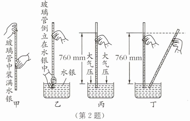 2. 如图所示是托里拆利实验的规范操作过程,关于托里拆利实验,下面说法错误的是(