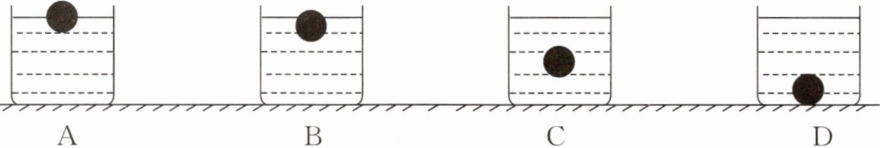 4. 如图所示,同样的小球在盛有不同液体的容器中保持静止,四个容器中的液面到容器底面的距离相同,则容器底面受到的液体压强最大的是(