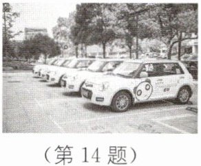 14. 南京服务网络平台已上线了“共享汽车”服务. 如图所示是“共享汽车”中的某品牌纯电动汽车,它不仅环保,而且使用成本还不到传统汽车的$\dfrac{1}{8}$.