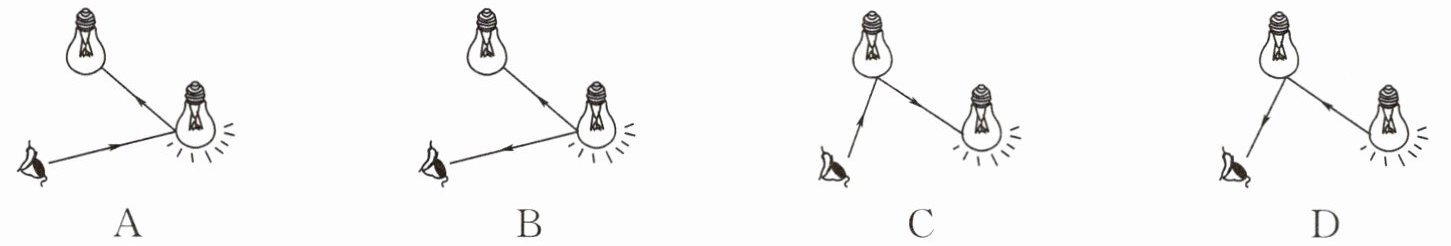 3. 如图所示,黑暗的房间里有两盏电灯,只有一盏灯点亮,但人能看到未点亮的灯泡. 以下对于“看到未点亮灯泡”所画的光路图,正确的是(
