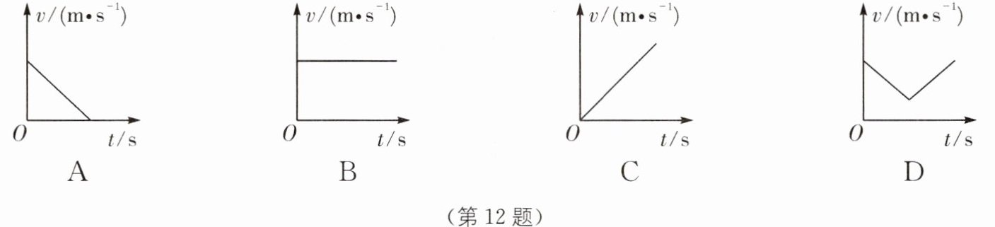 12. 某实验小组在“测量物体运动的平均速度”实验中,让小球从斜面 A 点由静止开始滚下,频闪照相机记录了小球在相同时间内通过的路程,照片如图所示.