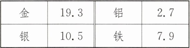 常温下一些金属的密度$/(×10^{3}kg\cdot m^{-3})$