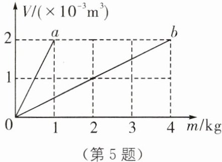 5. $a$、$b$两个实心物体的体积与质量的关系如图所示.下列说法中正确的是(
