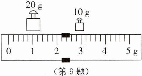 9. 用已调好的托盘天平测量物体的质量时,应将砝码放在天平的______右______盘.天平平衡时砝码的质量及游码在标尺上的位置如图所示,则被测物体的质量为______