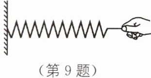 9. 如图所示,某人用$12N$的力沿水平方向向右拉一根轻质弹簧,弹簧对手的拉力