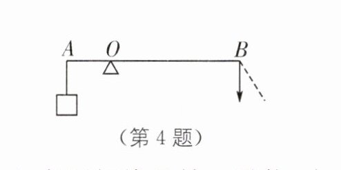4. 如图所示,轻质杠杆AB可以绕O点转动,在A点用细线悬挂一重物,在B点施加一竖直向下的动力,使杠杆在水平位置保持平衡.若将动力的方向改为沿虚线方向,仍使杠杆在水平位置保持平衡,则(