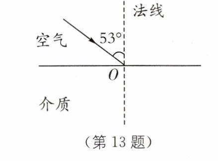 13. 一束光线从空气斜射向某透明介质表面$O$点,同时发生反射和折射,已知其反射光线和折射光线垂直,请在图中作出反射光线和折射光线,并在图中标出折射角.
