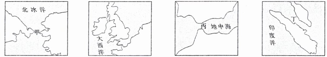 9. 读下列关于世界著名海峡的四幅地图,其中最靠近法国的海峡是(