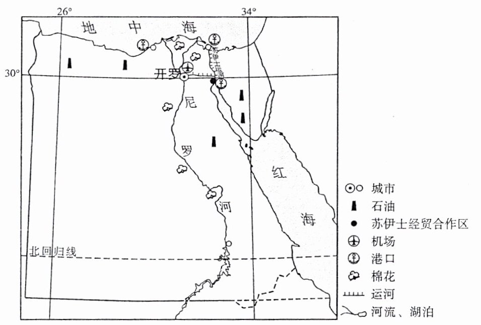 中埃·泰达苏伊士经贸合作区是中埃两国共同建设的经贸合作区。下图为苏伊士经贸合作区位置图。读图,完成1~4题。