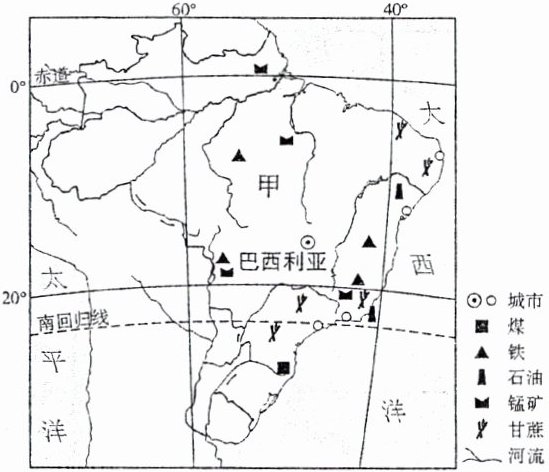甘蔗可以用于生产乙醇。下图中甲国东南部集中了全国一半以上的燃料乙醇厂。随着国内外对燃料乙醇需求的增加,该国更多的土地被开发为甘蔗田。读图,完成6~7题。