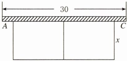 8. 用长为 40 m 的铁丝围成如下图所示的图形,一边靠墙,墙的长度 $ A C = 30 \mathrm { m } $,要使靠墙的一边长不小于 25 m,那么与墙垂直的一边长 $ x ( \mathrm { m } ) $ 的取值范围是(