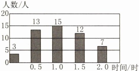 2. 某学校为了了解学生的课外阅读情况,随机调查了 50 名学生,得到他们各自在某一天课外阅读所用时间的数据,如下图所示.根据此条形统计图估计这一天该校学生平均课外阅读时间为 (