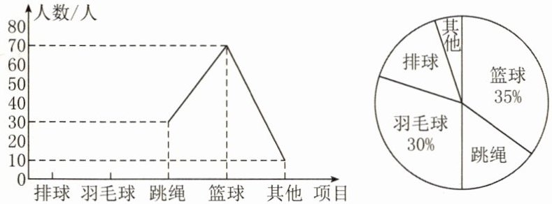 7. 某中学对学生最喜欢的课外体育项目进行了随机抽样调查,要求每人只能选择其中的一项,根据得到的数据,绘制的不完整统计图如下图所示,则下列说法中正确的是 (