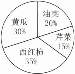 12. 一块 $300m^{2}$ 的菜地,4 种蔬菜的种植面积分布情况如右下图所示.