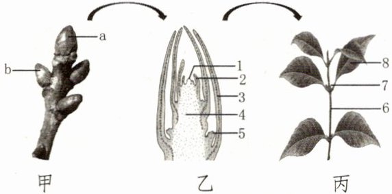 B. 图乙中 3 发育成图丙中的 7