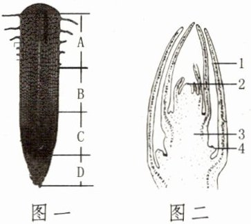 (1) 香椿幼根的生长是通过图一中[