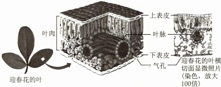 (2)表皮 叶肉 叶脉