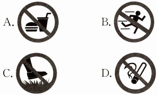 )15.新考法 Look at the sign “____”. No eating or drinking here.