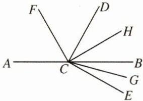 9. 如下图所示,$C$为直线$AB$上一点,$∠DCE$为直角,$CF$平分$∠ACD$,$CH$平分$∠BCD$,$CG$平分$∠BCE$,各学习小组经过讨论后得到以下结论:①$∠ECF$与$∠DCH$互补;②$∠ACF-∠BCG=45^{\circ }$;③图中互余的角有7对;④$∠DCG+∠ACF=135^{\circ }$. 其中正确的结论有(