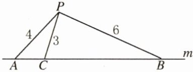 8. 如下图所示,$P$为直线$m$外一点,点$P$到直线$m$上的三点$A$,$B$,$C$的距离分别为$PA=4cm$,$PB=6cm$,$PC=3cm$,则点$P$到直线$m$的距离可能为(