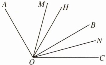 15. 如下图所示,过点$O$在$∠AOC$内部作射线$OB$,且$OH$平分$∠AOC$,$OM$平分$∠AOB$,$ON$平分$∠BOC$. 有下列结论: