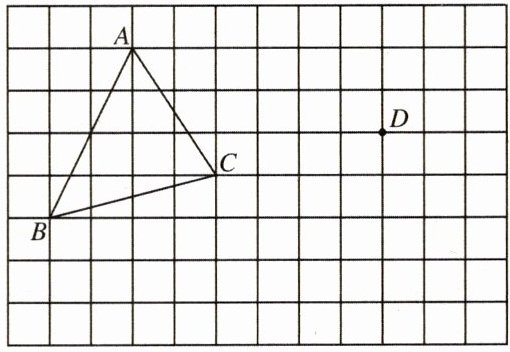 18. 在正方形网格中,每个小正方形的边长均为 1 个单位长度,$ \triangle ABC $ 三个顶点的位置如下图所示。现将 $ \triangle ABC $ 平移,使点 $ A $ 与点 $ D $ 重合,点 $ E $,$ F $ 分别是点 $ B $,$ C $ 的对应点。