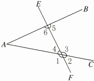 16. 如下图所示,若 $ AB // DE $,$ AC // DF $,请说出 $ \angle A $ 和 $ \angle D $ 之间的数量关系,并说明理由。