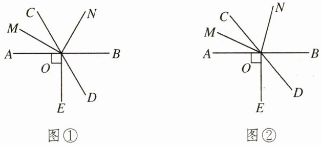 (2)如图②所示,若 $ \angle CON = \frac{1}{3} \angle EON $($ \angle EON < 180^{\circ} $),$ \angle MON = 80^{\circ} $,求 $ \angle BON $ 的度数。