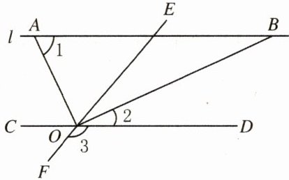 (3)若 $ \angle 2 : \angle 3 = 2 : 5 $,求 $ \angle AOF $ 的度数。