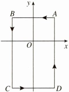 16. 如下图所示,在平面直角坐标系中,已知点 $ A(1,1) $,$ B(-1,1) $,$ C(-1,-2) $,$ D(1,-2) $,一智能机器人从点 $ A $ 出发,以每秒 1 个单位长度的速度沿 $ A B \rightarrow B C \rightarrow C D \rightarrow D A $ 方向匀速循环前行,当机器人前行了 $ 2023 \mathrm{~s} $ 时,其所在位置的点的坐标为