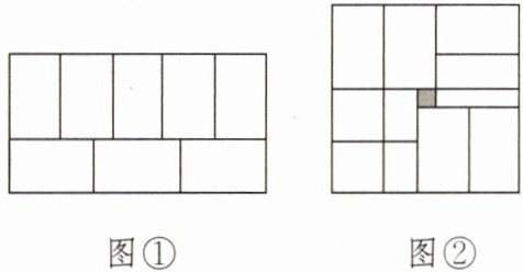 15. 如下图所示,图①,图②都是由$8$个一样的小长方形拼成的,且图②中的阴影部分(正方形)的面积为$1$,则小长方形的长为____