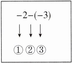 1 新考法 [2025 吉林四平期末]如图,在应用有理数减法法则计算$-2-(-3)$时,需要把“-”变成“+”的是(