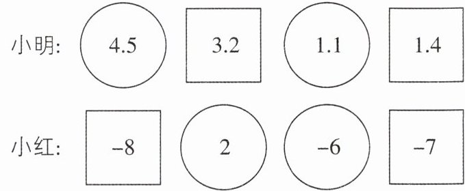 4[2025山东青岛期中]如图,小红和小明在游戏中规定:正方形表示加,圆表示减,然后进行计算,最终结果较小的获胜,则