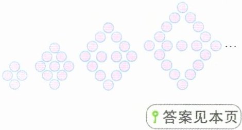 解:观察图案可知,第1个图案有4个圆,第2个图案有9个圆,第3个图案有14个圆。