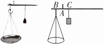 6 [2023 宁夏中考]如图是某种杆秤.在秤杆的点$A$处固定提纽,点$B$处挂秤盘,点$C$为 0 刻度点.当秤盘不放物品时,提起提纽,秤砣所挂位置移动到点$C$,秤杆处于平衡.秤盘放入$x$克物品后移动秤砣,当秤砣所挂位置与提纽的距离为$y$毫米时秤杆处于平衡.测得$x与y$的几组对应数据如下表: