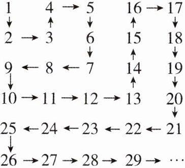 9 [2024 山东潍坊中考]将连续的正整数排成如图所示的数表.记$a_{(i,j)}为数表中第i行第j$列位置的数字,如$a_{(1,2)} = 4$,$a_{(3,2)} = 8$,$a_{(5,4)} = 22$.若$a_{(m,n)} = 2024$,则$m = $