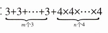 {m个3} + \underbrace{4×4×…×4}_{n个4}$的结果是(