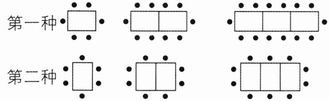 14 [2024 河南周口期末]某餐厅中,一张桌子可坐 6 人,有以下两种摆放方式: