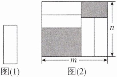 4 [2024 广西贵港质检] 把四张形状大小完全相同的小长方形卡片(如图(1))不重叠地放在一个底面为长方形(长为 $m$,宽为 $n$)的盒子底部(如图(2)),盒子底面未被卡片覆盖的部分用阴影表示,则图(2)中两块阴影部分的周长和是(