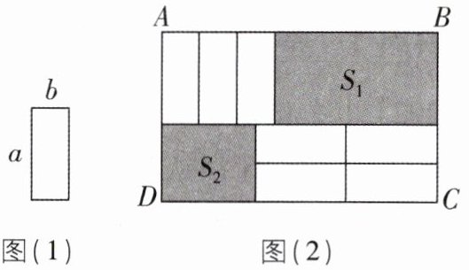 (2)7 张如图(1)的小长方形,长为 $a$,宽为 $b$,按照图(2)的方式不重叠地放在大长方形 $ABCD$ 内,设大长方形中未被覆盖的两个部分(图中阴影部分)中,右上角的面积为 $S_{1}$,左下角的面积为 $S_{2}$,当 $AB$ 的长变化时,$S_{1}-S_{2}$ 的值始终保持不变,求 $a$ 与 $b$ 的等量关系.