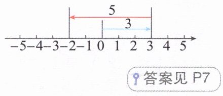(2) 对于第二小题,点A表示的数是$3$,先向左移动$7$个单位长度,左移是减,得到$3 - 7 = -4$,再向右移动$5$个单位长度,右移是加,所以终点B表示的数是$-4 + 5 = 1$。A、B两点间的距离为$|1 - 3| = 2$。