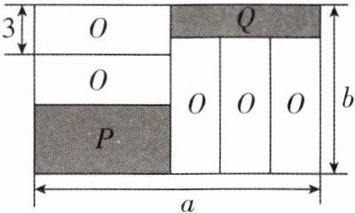6 [中]如图,长为$a$,宽为$b的长方形被分割成7$部分,除阴影图形$P$,$Q$外,其余$5部分为形状和大小完全相同的小长方形O$,其中小长方形$O的宽为3$.