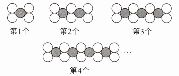 11 [2023山西中考]如图是一组有规律的图案,它由若干个大小相同的圆片组成.第1个图案中有4个白色圆片,第2个图案中有6个白色圆片,第3个图案中有8个白色圆片,第4个图案中有10个白色圆片,…,依此规律,第$n$个图案中有