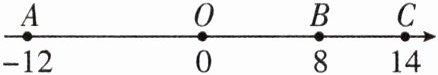 8 思想方法分类讨论 [2025 河南郑州期末,中]如图,在数轴上点 $ O $ 是原点,点 $ A $,$ B $,$ C $ 表示的数分别是 $ - 12 $,8,14. 若点 $ P $ 从点 $ A $ 出发以 2 个单位/秒的速度向右运动,其中由点 $ O $ 运动到点 $ B $ 的期间速度变为原来的 2 倍,之后立刻恢复原速,点 $ Q $ 从点 $ C $ 出发以 1 个单位/秒的速度向左运动. 若点 $ P $,$ Q $ 同时出发,则经过多少秒后,$ P $,$ Q $ 两点到点 $ B $ 的距离相等?