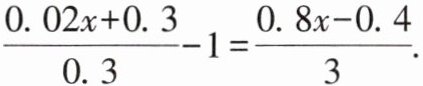 2 [2025陕西西安调研,中]解方程:$\frac {0.3x+0.8}{0.5}-\frac {0.02x+0.3}{0.3}-1= \frac {0.8x-0.4}{3}.$