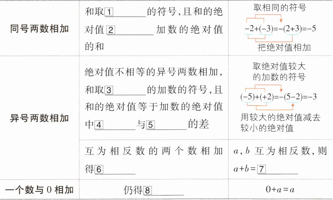 ①相同;②等于;③绝对值较大;④较大者;⑤较小者;⑥0;⑦0;⑧这个数