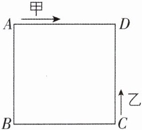 3[2024安徽蚌埠期末,中]如图,甲、乙两动点分别从正方形ABCD的顶点A,C同时沿正方形的边开始匀速运动,甲按顺时针方向运动,乙按逆时针方向运动,若乙的速度是甲的3倍,那么它们第一次相遇在AD边上,则它们第2023次相遇在______边上.