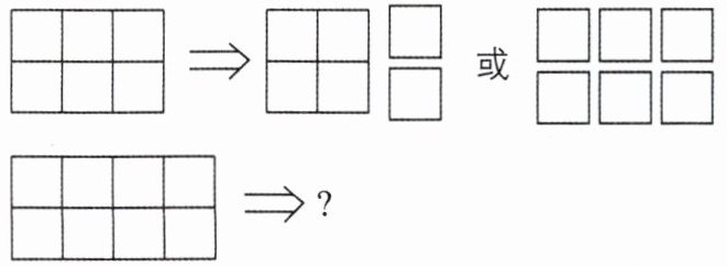 7 如图,一个 $3 × 2$ 的长方形可以用 2 种不同的方式分割成 3 或 6 个小正方形,那么一个 $4 × 2$ 的长方形用不同的方式分割后,小正方形的个数可以是______。