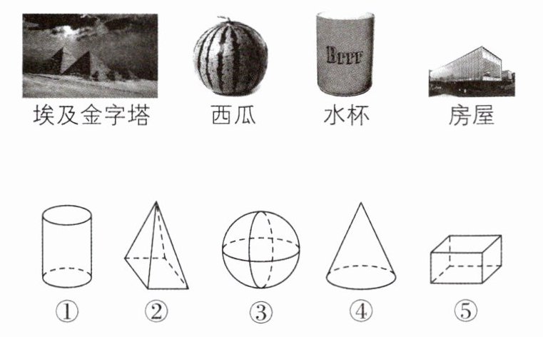 【解】埃及金字塔——②,西瓜——③,水杯——①,房屋——⑤.