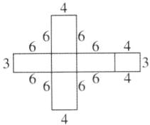 (3)的外围周长为4×6 + 4×4 + 6×3 = 58.